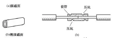 (1)銅導線或鋁導線的緊壓連接。壓接套管截面有圓形和橢圓形兩種,如圖12所示。圓截面套管內可以穿入一根導線,橢圓截面套管內可以并排穿入兩根導線。FKZ卷筒電纜_高柔性拖鏈電纜_機器人電纜生產廠家