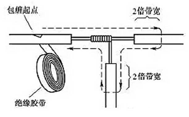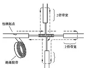 導線分支接頭的絕緣處理基本方法同上,T字分支接頭的包纏方向如圖21所示,走一個T字形的來回,使每根導線上都包纏兩層絕緣膠帶,每根導線都應包纏到完好絕緣層的兩倍膠帶寬度處。FKZ卷筒電纜_高柔性拖鏈電纜_機器人電纜生產廠家