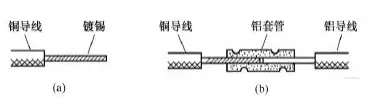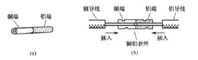 一種方法是采用銅鋁連接套管。銅鋁連接套管的一端是銅質,另一端是鋁質,如圖15(a)所示。使用時將銅導線的芯線插入套管的銅端,將鋁導線的芯線插入套管的鋁端,然后壓緊套管即可,如圖15(b)所示。FKZ卷筒電纜_高柔性拖鏈電纜_機器人電纜生產廠家