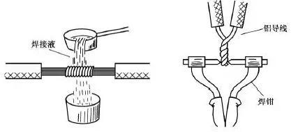 氣焊是指利用氣焊槍的高溫火焰,將鋁芯線的連接點加熱,使待連接的鋁芯線相互熔融連接。氣焊前應將待連接的鋁芯線絞合,或用鋁絲或鐵絲綁扎固定,如圖19所示。FKZ卷筒電纜_高柔性拖鏈電纜_機器人電纜生產廠家