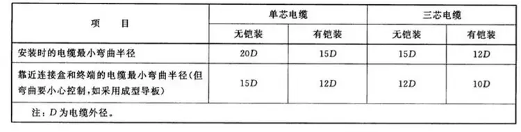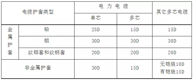 電纜彎曲半徑的規(guī)定及電纜最小彎曲半徑